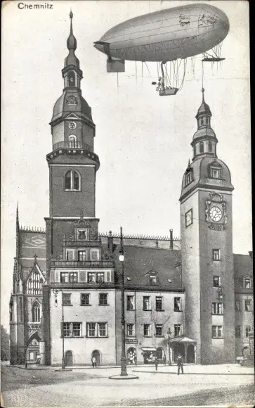 Ak Chemnitz Sachsen, Luftschiff Parseval über der Stadt 1910, Zeppelin