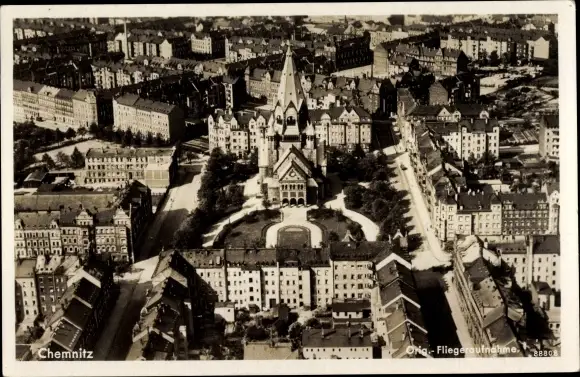 Ak Chemnitz Sachsen, Teilansicht der Stadt, Kirche, Fliegeraufnahme