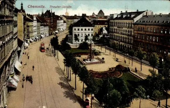 Ak Chemnitz Sachsen, Theaterstraße, Platz