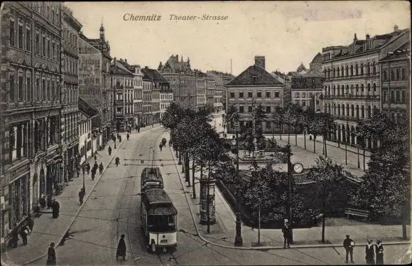 Ak Chemnitz Sachsen, Theaterstraße, Straßenbahn 205, Denkmal