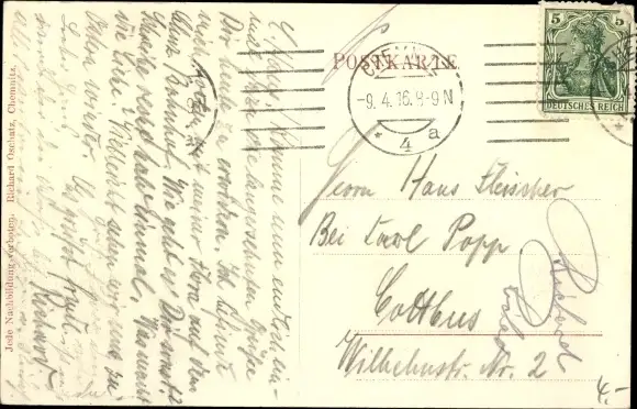 Zustand, siehe Scan, gelaufen, 1916 - ca 14 cm X 9 cm