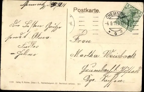 gelaufen 1911, Eckknick links oben, Stempelspur, sonst guter Zustand