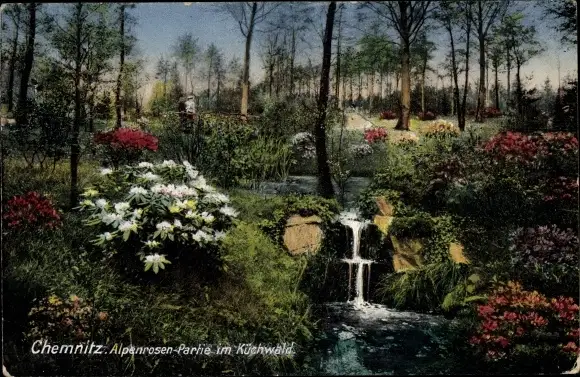 Ak Chemnitz in Sachsen, Alpenrosen Partie im Küchwald