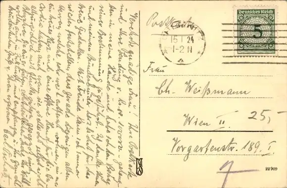 Zustand, siehe Scan, gelaufen, 1924 - ca 14 cm X 9 cm