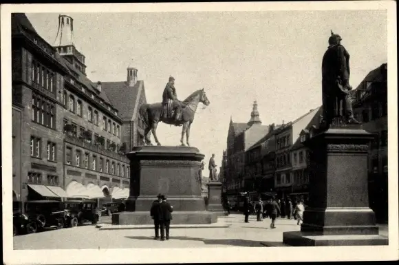 Ak Chemnitz in Sachsen, Denkmäler vor dem Rathaus