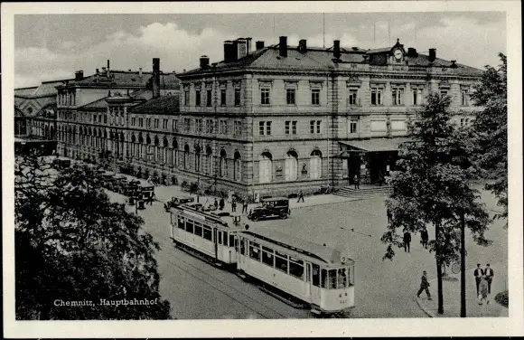 Ak Chemnitz in Sachsen, Hauptbahnhof, Straßenbahn