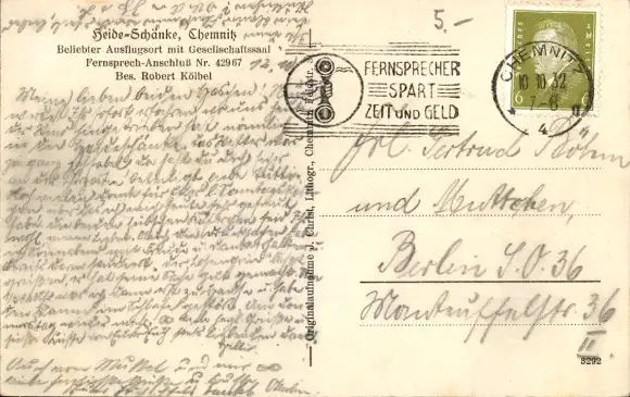 Zustand, siehe Scan, gelaufen, 1932- Bes. Robert Kölbel - ca 14 cm X 9 cm