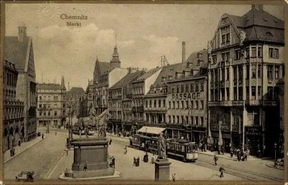 Ak Chemnitz in Sachsen, Markt, Passage, Denkmal