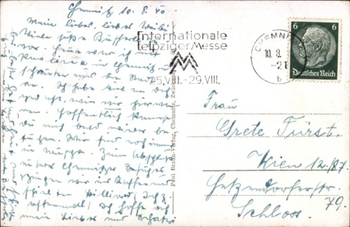 Zustand, siehe Scan, gelaufen, 1940 - ca 14 cm X 9 cm