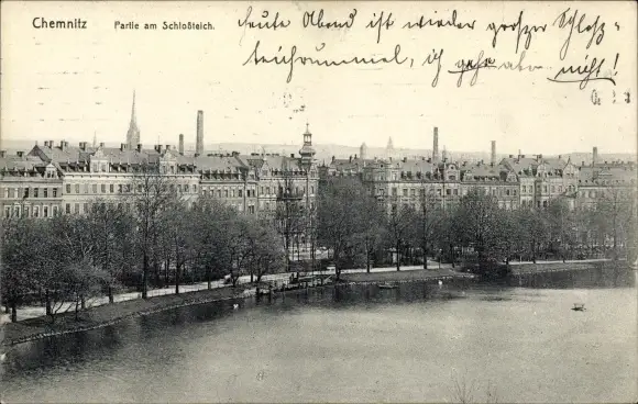 Ak Chemnitz in Sachsen, Partie am Schlossteich