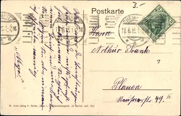 Zustand, siehe Scan, gelaufen, 1915 - ca 14 cm X 9 cm