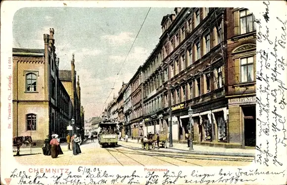 Ak Chemnitz in Sachsen, Poststraße, Straßenbahn