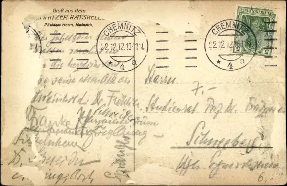 gelaufen 1912, rückseitig Klebereste, sonst guter Zustand