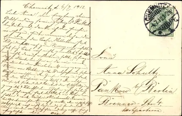 Zustand, siehe Scan, gelaufen, 1912 - ca 14 cm X 9 cm