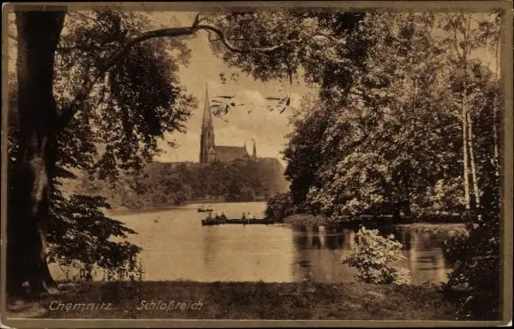 Ak Chemnitz in Sachsen, Schlossteich, Kirche