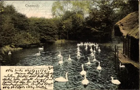 Ak Chemnitz in Sachsen, Schlossteich, Schwäne