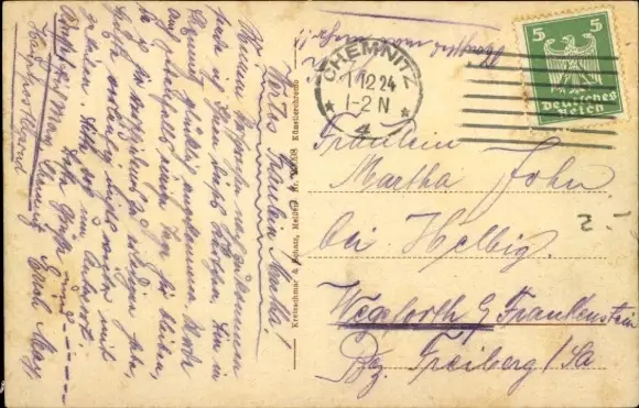 Zustand, siehe Scan, gelaufen, 1924 - ca 14 cm X 9 cm