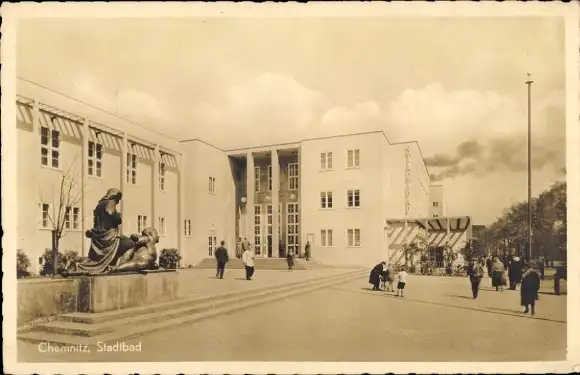 Ansichtskarte, Postkarte, Badeanstalt, Schwimmbad, Freibad, Strandbad, Volksbad