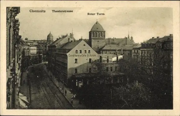 Ak Chemnitz in Sachsen, Theaterstraße, Roter Turm, Conditorei Kunze