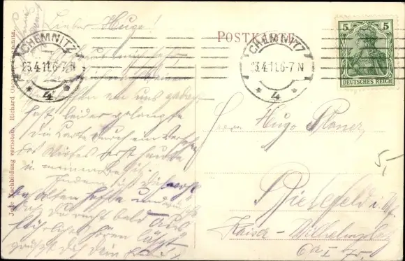 Zustand, siehe Scan, gelaufen, 1911 - ca 14 cm X 9 cm