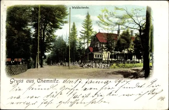 Ak Chemnitz in Sachsen, Waldschänke, Außenansicht