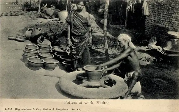 Ak Chennai Madras Indien, Töpfer, heute Keramiker, bei der Arbeit