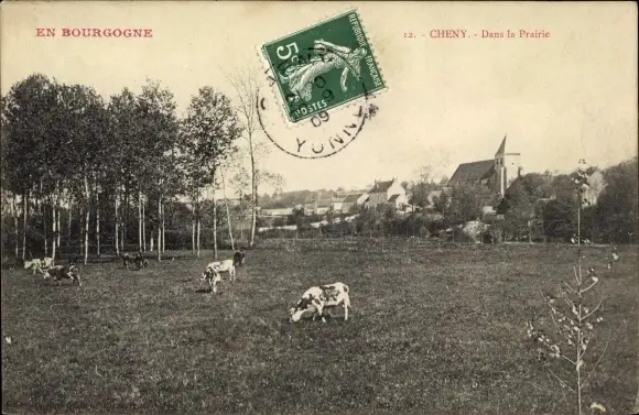Ak Cheny Yonne, Dans la Prairie, Pré avec des Vaches
