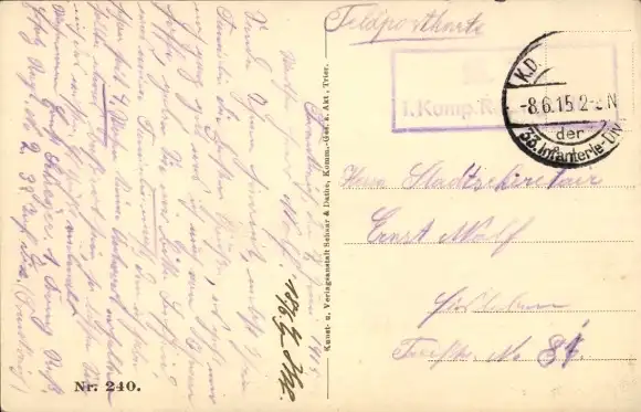 Zustand, siehe Scan, gelaufen, 1915 - ca 14 cm X 9 cm