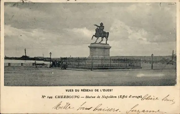 Ak Cherbourg Manche, Statue de Napoleon