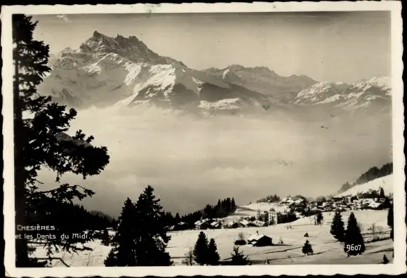 Ak Chesieres Kanton Waadt, Ort mit Umgebung im Winter