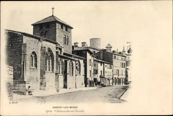 Ak Chessy les Mines Rhône, Ortspartie mit Kirche