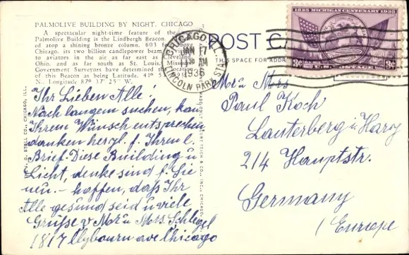 Ak Chicago Illinois USA, Palmolive Building bei Nacht