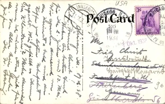 Zustand, siehe Scan, gelaufen, 1938 - ca 14 cm X 9 cm
