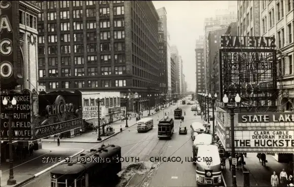 Ak Chicago Illinois USA, State Street looking South, Straßenbahnen
