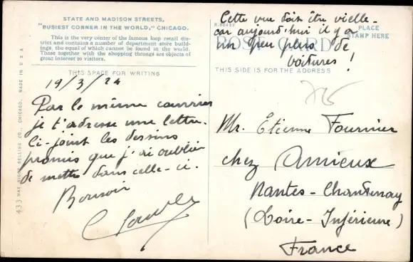 Ak Chicago Illinois USA, State and Madison Streets, Busiest Corner in the World, Verkehr