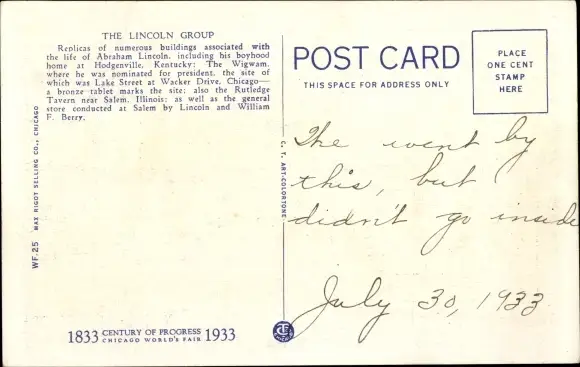 Ak Chicago Illinois USA, The Lincoln Group, World's Fair, 1933