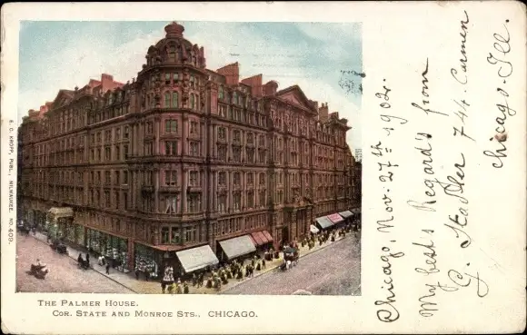 Ak Chicago Illinois USA, The Palmer House, Cor. State and Monroe Sts., Eckgebäude