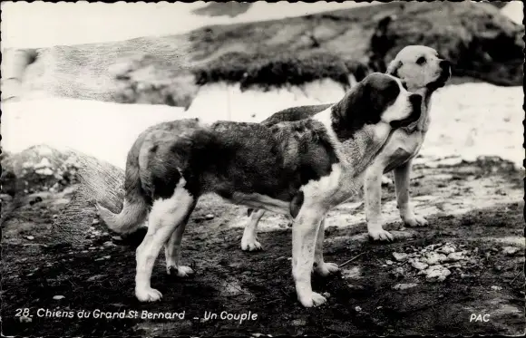 Ak Chiens du Grand St. Bernard, Un Couple