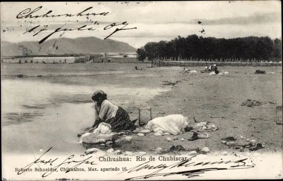 Ak Chihuahua Mexiko, Rio de Chubiscar, Wäscherin
