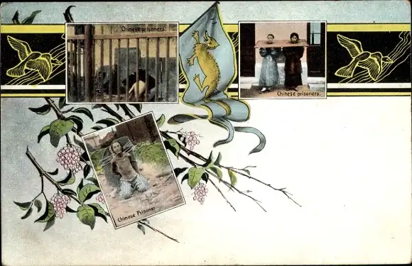 Ak China, Chinese prisoners, Gefängins, Chinesische Gefangene, Drachen