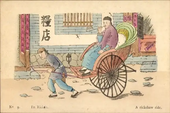 Ak China, Rikscha, Chinesen, Mission Chefoo