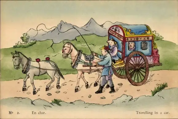 Ansichtskarte, Postkarte, Kutsche, Pferdegespann, Droschke, chariot, carro