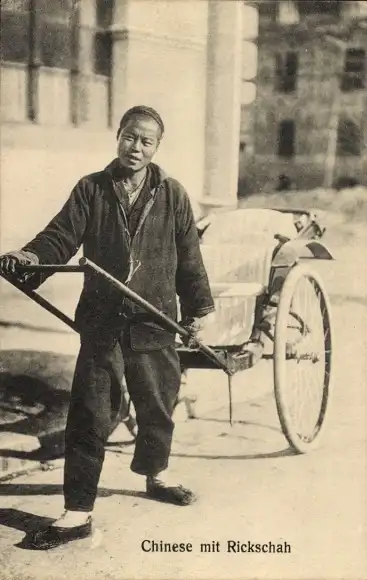 Ak Chinese mit Rickschah, Rikscha Fahrer