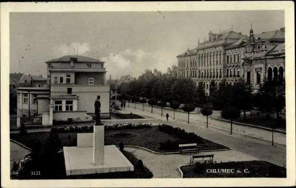 Ak Chlumec nad Cidlinou Chlumetz an der Cidlina Region Königgrätz, Platz, Denkmal