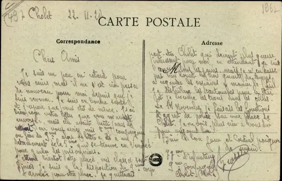ungelaufen, datiert 1920, Rückseite beschrieben, sehr guter Zustand