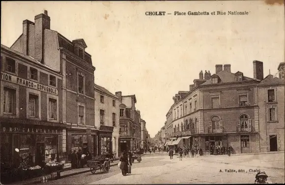 Ak Cholet Maine et Loire, Place Gambetta et Rue Nationale