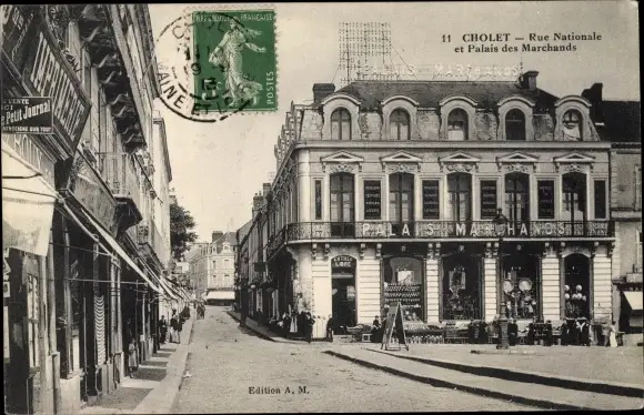 Ak Cholet Maine et Loire, Rue Nationale et Palais des Marchands