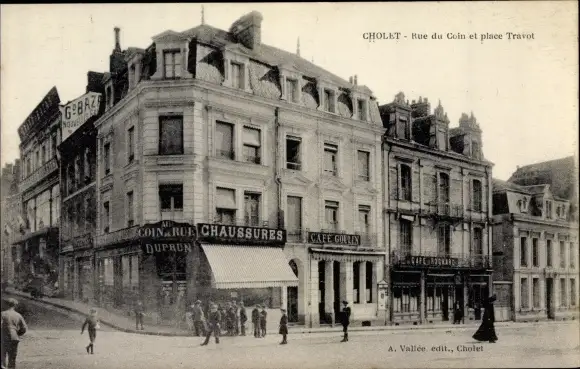 Ak Cholet Maine et Loire, Rue du Coin et place Travot