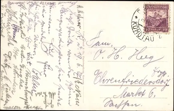 Ansichtskarte, Postkarte, Aussig, Ústí nad Labem, Komotau, Chomutov