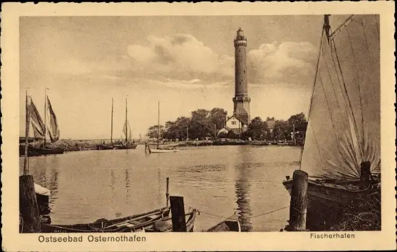 Ak Chorzelin Osternothafen Świnoujście Swinemünde Pommern, Fischerhafen, Leuchtturm